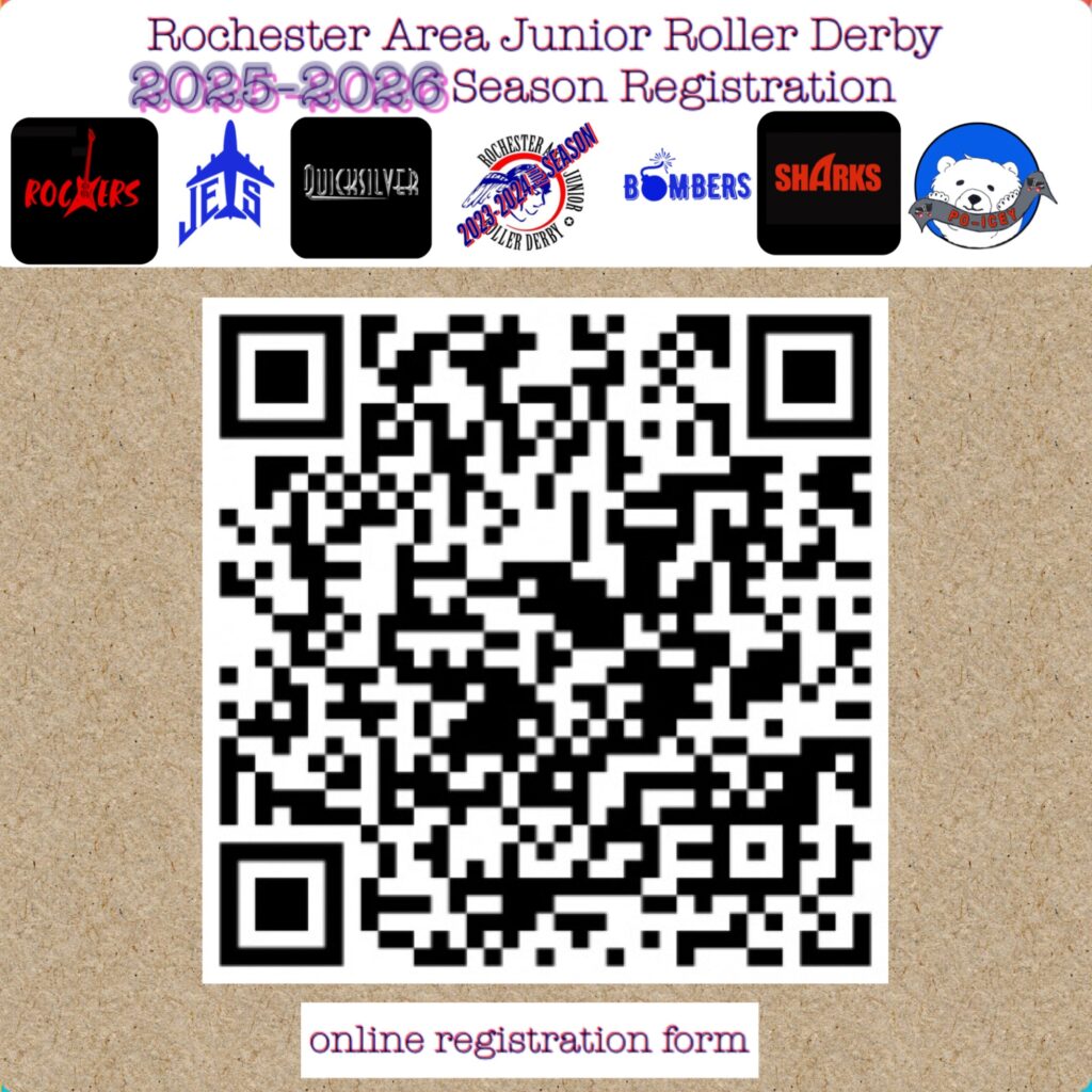Rochester Area Junior Roller Derby is the region’s first team offering roller derby play and training to children and teens from 6-18. As a JRDA affiliated team, skaters learn the basics of safe skating as they work through their Level 1, 2, and 3 assessments in preparation for scrimmage and game play.
