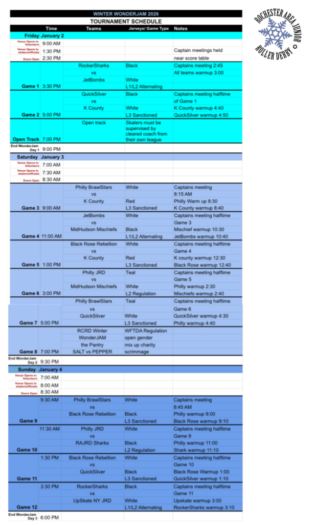 It’s back for a second year! Winter WonderJam Invitational Tournament was held on January 2, 3, and 4, 2026 at Minett Hall at the ROC Dome Arena, 2695 East Henrietta Rd, Henrietta NY 14467